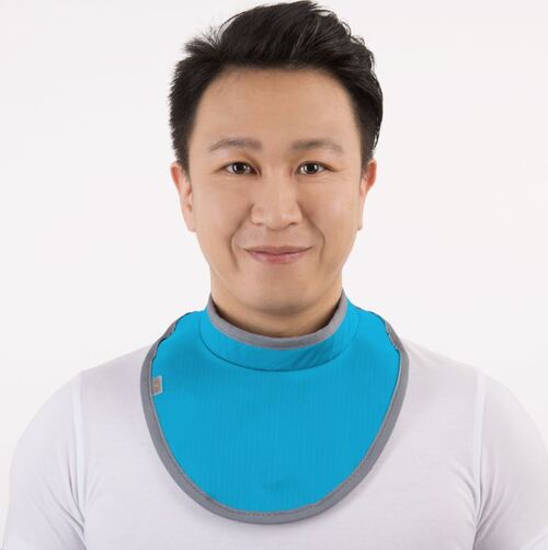 Röntgenkauluri suojaamaan kilpirauhasta röntgenkuvauksessa. Lyijyekvivalenssi Pb 0,5 mm. Aikuisten koko, kaulanympärys 32-45 cm. Magneettikiinnitys. Väri Curacao turkoosi. HUOM! Ei saa käyttää potilailla, joilla on sydämentahdistin magneetti kiinnityksen vuoksi.