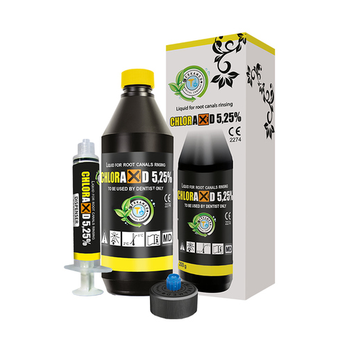 Käyttövalmis 5,25 % natriumhypokloriittiliuos juurikanavien huuhteluun. Pullossa annostelija. Jääkaappisäilytys 2 - 8°C.