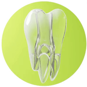 Kirkas hammas juurihoidotekniikoiden harjoitteluun. Ylämolaari. 3 kanavaa ja 3 juurta.