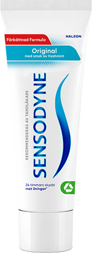 Sensodyne Original hammastahnan sisältämä fluori vahvistaa hampaita ja suojaa reikiintymistä vastaan. Raikas mintun maku. Ei sisällä natriumlauryylisulfaattia. RDA 55. 1450 ppm fluoria.
