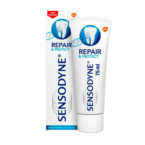 Sensodyne Repair & Protect hammastahna vihloville hampaille on suunniteltu erityisesti korjaamaan hampaan vihlovia alueita sekä suojelemaan hampaita vihlonnalta. Sensodyne hammastahna sisältää ainutlaatuisen NovaMin -teknologian, joka muodostaa vihlovien hampaiden herkille alueille kovemman suojakerroksen korjaten, vahvistaen ja suojaten hampaita vihlonnalta. Sensodyne hammastahna ei sisällä vaahtoavaa natriumlauryylisulfaattia. Raikas mintun maku. Sisältää 1450 ppm fluoria.