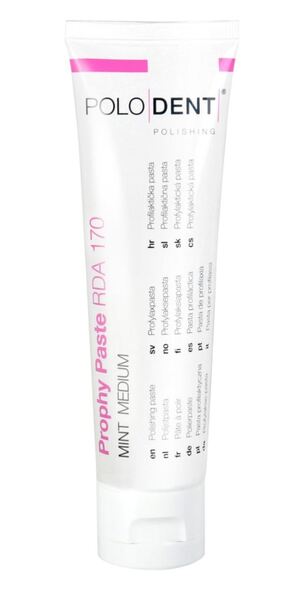 PoloDent Puhdistuspasta poistaa tehokkaasti plakkia ja värjäytymiä. Pasta helposti levittyvä ja ei roisku. Miellyttävä mintun maku. Sisältää 0,2 % natriumfluoridia. Pasta vihreää. RDA 170.
