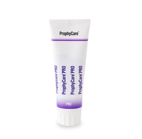 ProphyCare PRO on yksivaiheinen puhdistuspasta, joka samalla puhdistaa värjäytymät sekä kiillottaa. Pastan puhdistusteho muuttuu hellävaraiseksi kiillotukseksi, kun partikkelit hajoavat. RDA arvo on hoidon alussa 20, jolloin puhdistusteho on korkea ja se pienenee asteittain RDA arvoon 5 antaen lopullisen kiillon hampaille. Sisältää fluoria 0,1 %. pH 5-6. Mieto mintun maku. Tuubi 60 ml (84 g).