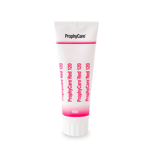 ProphyCare 120 puhdistuspasta poistaa värjäytymät ja plakin hampaiden pinnoilta kiillottaen ne samalla tehokkaasti. Jättää hampaille sileän ja suuhun raikkaan tunteen hoidon jälkeen. Homogeeninen koostumus, pasta ei kuivu, nesteydy, erotu tai roisku. Sopii hyvin myös implanteille. Sisältää fluoria 0,1 %. Mieto mintun maku. Tuubi 60 ml ( 84 g ).
