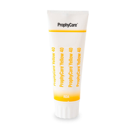 ProphyCare 40 on puhdistuspasta hampaiden ja täytteiden loppukiillotukseen. Sopii erinomaisesti lasten hammashoitoon, implanttien puhdistamiseen sekä paljastuneille hammaskauloille. Jättää hampaille sileän ja suuhun raikkaan tunteen hoidon jälkeen. Homogeeninen koostumus; pasta ei kuivu, nesteydy, erotu tai roisku. Sisältää fluoria 0,1 %. Mieto mintun maku. Tuubi 60 ml (97 g).