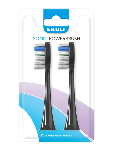 Vaihtoharja EKULF Sonic PowerBrush sähköhammasharjaan. Pieni ja ovaalinmuotoinen harjaspää, joka poistaa tehokkaasti plakkia. Hellävarainen herkille hampaille ja ikenille. Musta.