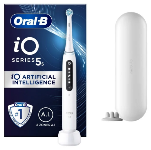 Oral B iO 5 sähköhammasharjan ainutlaatuisen pyöreän harjaspään hellävarainen mikrovärähtely antaa ammattimaisen puhtaan tunteen joka päivä. Älykäs paineentunnistin auttaa harjaamaan oikealla paineella, ei liian kovaa eikä liian varovasti. Tekoälyavusteinen harjaustunnistin tunnistaa harjaustyylin ja ohjaa harjaamaan paremmin. Viisi eri harjaustilaa. Interaktiivinen Led-näyttö antaa palautetta; se osoittaa harjaustilan ja muistuttaa vaihtoharjan vaihtamisesta. Voidaan yhdistää Oral-B sovellukseen. Pakkaus sisältää: 1 kpl sähköhammasharjan runko-osa, 1 kpl laturi, 1 kpl matkakotelo, 2 kpl Ultimate Clean Care vaihtoharjaa. Väri Quiet White.