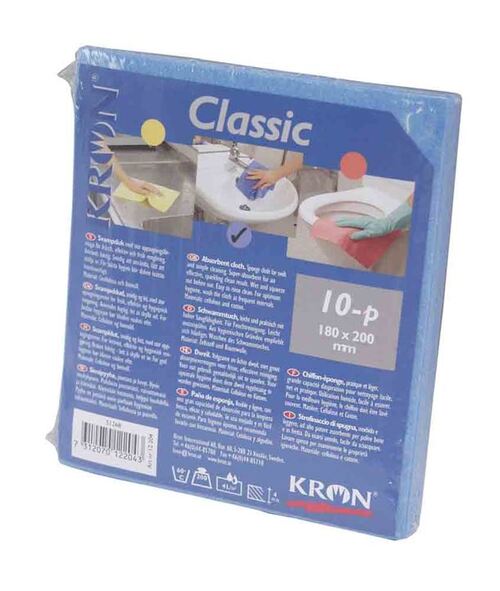 Kron Classic sieniliina nopeaan ja tehokkaaseen puhdistukseen. Korkea imukyky. Hyvän hygienian ylläpitämiseksi liina tulee pestä käytön jälkeen 60 °C: ssa. Materiaali: selluloosa ja puuvilla. Koko 17 x 20 cm.