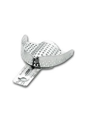 Perforoitu yläleuan jäljennöslusikka. Koko XS. Leveys 66 mm, pituus 51 mm. Alumiinia.