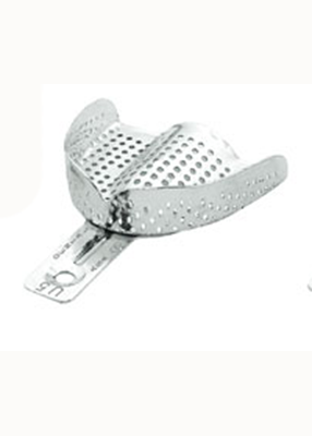 Perforoituylä leuan jäljennöslusikka. Koko L. Leveys 74 mm, pituus 62 mm. Alumiinia.