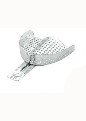 Perforoitu yläleuan jäljennöslusikka. Koko XL. Leveys 76 mm, pituus 63 mm. Alumiinia.
