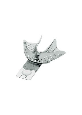 Perforoitu, ohut reunainen alaleuan jäljennöslusikka. Koko XXS. Värikoodi valkoinen.