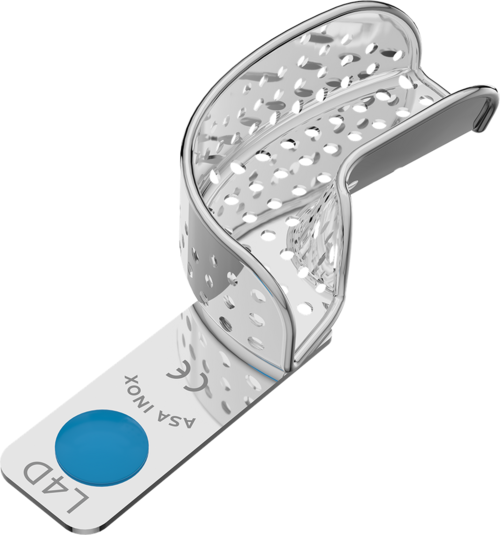 Perforoitu yläuan oikean puolen osalusikka. Koko M. Värikoodi sininen. Ruostumatonta terästä.