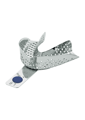 Perforoitu, ohut reunainen alaleuan jäljennöslusikka. Koko XL. Värikoodi tummansininen.