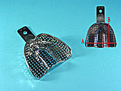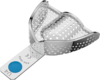 Perforoitu yläleuan jäljennöslusikka koko M. Leveys 69 mm, pituus 57 mm. Värikoodi sininen. Ruostumatonta terästä.