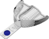 Perforoitu yläleuan jäljennöslusikka koko XL. Leveys 73 mm, pituus 62 mm. Värikoodi tummansininen. Ruostumatonta terästä.