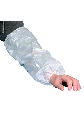 Kertakäyttöinen, muovinen hihasuojus, jossa kuminauha. Koko 20 x 40 cm.