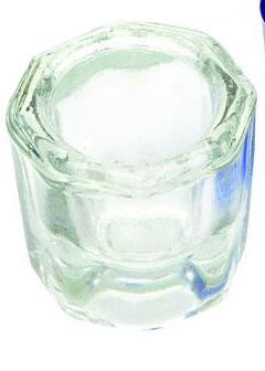 Lasinen lääkekuppi kirkas. Halkaisija 2 cm, korkeus 3 cm.
