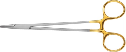 Saksimallinen Crile-Wood neulankuljetin kirurgisiin toimenpiteisiin. Ommelaineille 3/0 - 5/0. Pituus 18 cm. Kovametalli-instrumentti (TC).