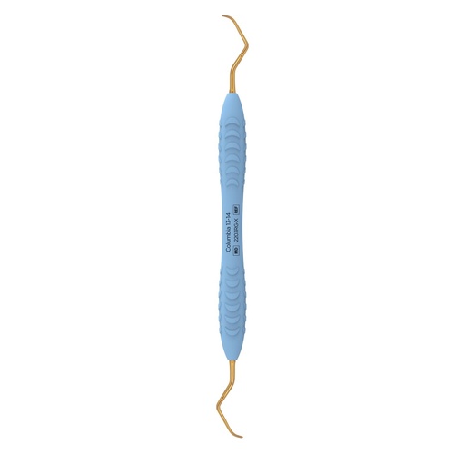 Columbia 13-14 yleiskyretti soveltuu kohtalaisen tai runsaan hammaskiven poistoon kaikilta supra- ja subgingivaalisilta hammaspinnoilta. Teroitusvapaa ErgoRazor Gold-instrumentti on valmistettu korkealaatuisesta, ruostumattomasta teräksestä ja siinä on kestävä kultapinnoite. Lämpökäsittelyn ansiosta instrumenttien kovuus on yli 60 (HRC), mikä takaa erinomaisen kestävyyden ja terävyyden. Toimitetaan instrumenttikasetissa. Punainen Ergo X- varsi. Varren halkaisija 11,5 mm.