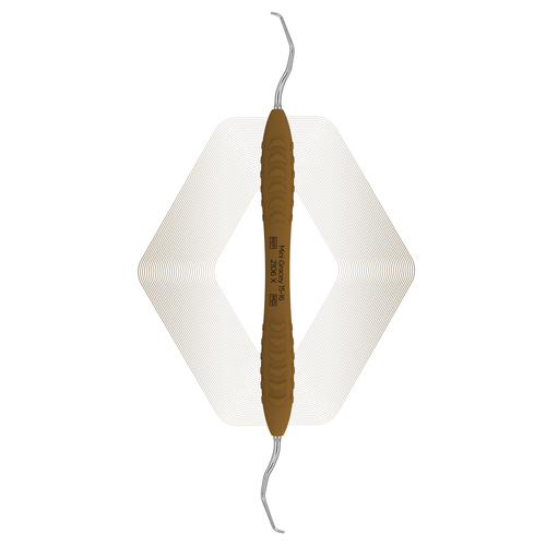Mini Gracey 15-16 subgingivaalisen hammaskivenpoistoon molaarien mesiaalipinnoilta. Työskentelyterän varsi on voimakkaammin taivutettu kuin Gracey 11/12:ssa. Teroitusvapaa ErgoRazor Gold-instrumentti on valmistettu korkealaatuisesta, ruostumattomasta teräksestä ja siinä on kestävä kultapinnoite. Lämpökäsittelyn ansiosta instrumenttien kovuus on yli 60 (HRC), mikä takaa erinomaisen kestävyyden ja terävyyden. Toimitetaan instrumenttikasetissa. Keltainen Ergo X- varsi. Varren halkaisija 11,5 mm.