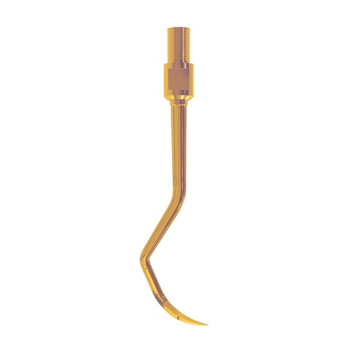 ErgoTip kärkien ja varren avulla voidaan luoda omien tarpeiden mukainen instrumentti. Ekologinen ja kustannustehokas vaihtoehto perinteiselle instrumentille. Kun on aika vaihtaa tai uusia instrumentti, riittää kun vaihtaa vain kärjet. Teroitusvapaa ErgoRazor Gold-vaihtokärki on valmistettu korkealaatuisesta, ruostumattomasta teräksestä ja siinä on kestävä kultapinnoite. Lämpökäsittelyn ansiosta instrumenttien kovuus on yli 60 (HRC), mikä takaa erinomaisen kestävyyden ja terävyyden. Kiristetään ErgoTip varteen kiristysavaimella. Vaihtokärki minisirppi 12.