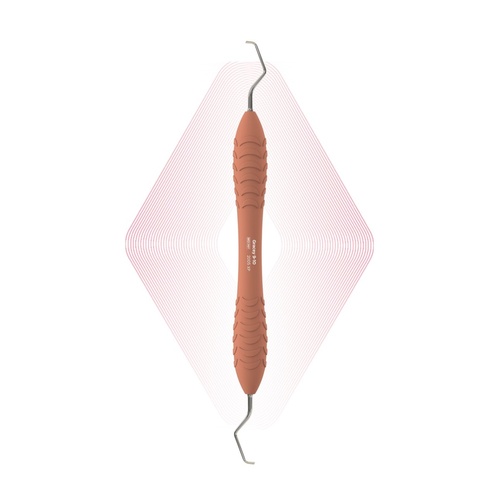 Gracey 9-10 subgingivaalisen hammaskiven poistoon molaarien bukkaali- ja linguaalipinnoilta. Vaaleanpunainen Ergo XP-varsi. Varren halkaisija 13,6 mm.