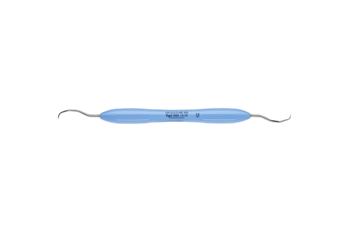 Subgingivaalisen hammaskiven poistoon premolaarien ja molaarien distaalipinnoille. Rigid-kyretissä työskentelyterän kaula on paksumpi sekä työosa hieman leveämpi. Sininen ErgoNorm-varsi.