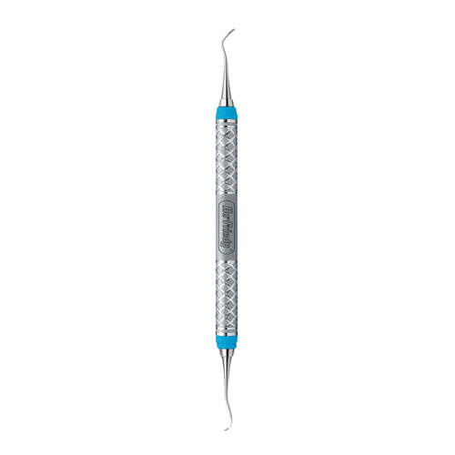 Erittäin ohut, eteenpäin kaartuva sirppiskaaleri. Kaksipäinen instrumentti, jossa Easy-grip-kahva.