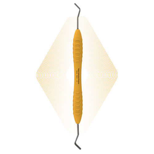 Muovi-instrumentti taka-alueelle täyteaineen viemiseen, tiivistämiseen ja muotoiluun. Punainen Ergo X varsi. Varren halkaisija 11,5 mm.