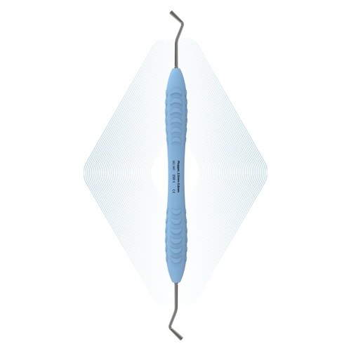 Lieriömäinen täppäin täytemateriaalien tiivistämiseen. Kärkien halkaisijat: 2,5 mm-3,8 mm. Vaaleansininen Ergo X varsi. Varren halkaisija 11,5 mm.