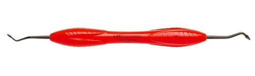 Yhdistelmämuovi-instrumentissa on kartionmuotoiset työosat, jotka sopivat erityisen hyvin okklusaalipintojen muotoiluun ja yhdistelmämuovin pakkaamiseen. LM Dark Diamond™ tarttumaton pinnoite ei tartu paikka-aineeseen. Instrumentissa on erittäin kova ja sileä pinta, joka ehkäisee naarmuuntumista ja helpottaa puhdistamista. Tumma väripinta luo erinomaisen kontrastin paikka-aineeseen ja vähentää heijastuksia. Punainen ErgoSense-varsi.