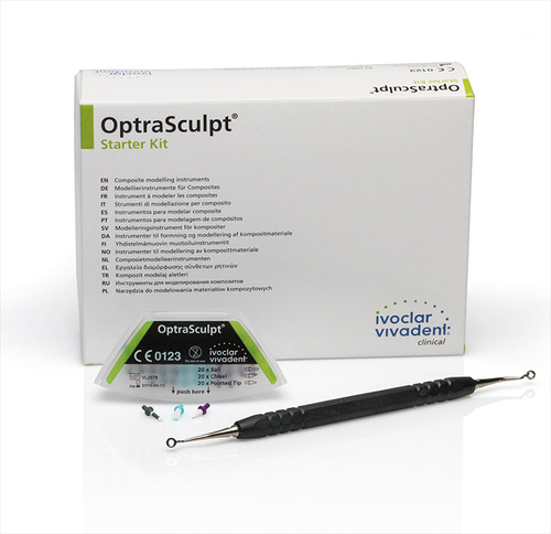 OptraSculpt kaksipäinen muotoiluinstrumentti vaihdettavilla kärjillä yhdistelmämuovin tarkkaan ja helppoon muotoiluun. Instrumentissa on optimaalinen työskentelykulma taka-alueelle. Kolme eri mallista kärkeä; pallo, suippo ja talttamainen kärki. Ei tartu, eikä jätä jälkiä täytteeseen. Instrumentti voidaan autoklavoida. Pakkaus sisältää: 1 kpl kaksipäinen instrumentti, muotoilukärkiä 20 kpl taltta, 20 kpl pallo ja 20 kpl suippo malleja.