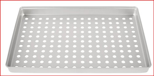 Perforoidun alumiinitarjottimen 284 x 184 x 17 mm kansi. Harmaa. Autoklavointi max 134 °C.