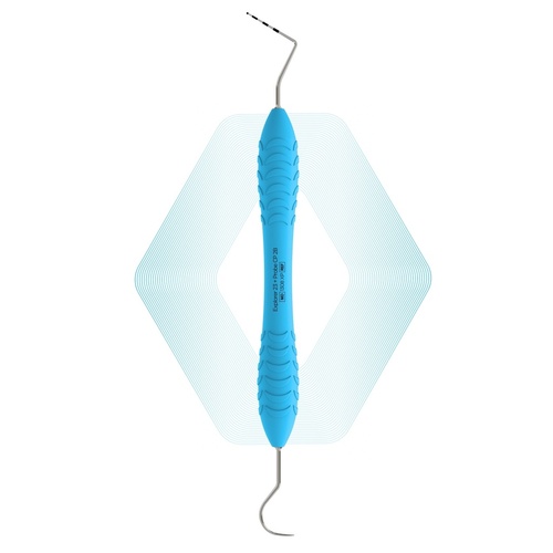 Koetin-ientaskumittari mitta-asteikolla 2 mm välein: 2-4-6-8-10-12 mm. Ientaskumittarissa pallopää. Sininen Ergo X vasi. Varen halkaisija 13,65 mm.