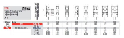 Erityisen sopiva käytettäväksi suun leikkauksissa ja implantteissa lieriömäisten luuimplanttien tarkkaan, helppoon valmistukseen ja luun poistamiseen ( juuren kärjen resektiossa). Hyvät aksiaaliporausominaisuudet mahdollistavat tarkan porauksen. Tehokkaat luunleikkuuterät mahdollistavat atraumaattisen hoidon. Laser syvyysmerkinnät 2 mm: n kohdalla tarjoavat tarkan visualisoinnin tunkeutumissyvyydestä.