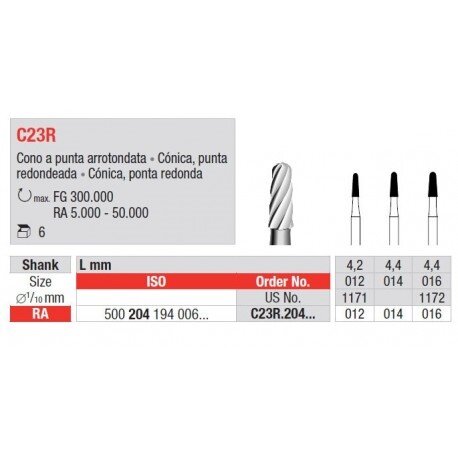 5st, hårdmetall, konisk, rund topp, standard 22mm
