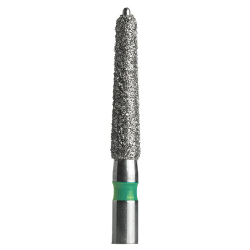 Kapeneva timantti ohjaustapilla, terän pituus 8 mm, ohjaustappi 0,5 mm. Koko 021.Turbiinikiinnitys (FG). Coarse, vihreä.