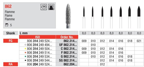 Hiontatimantti medium. FG-kiinnitys. Pituus 19 mm. Terän pituus 8 mm.
