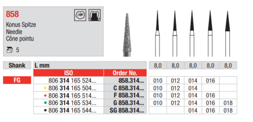 Kartiomainen, kärkiosaltaan timanttiterä keskikarkealla rakeisuudella ja FG-kiinnityksellä.