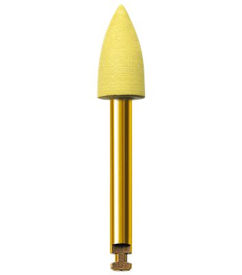 Timanttikyllästeinen kiillotuskärki yhdistelmämuoville. Pituus 10 mm, halkaisija 5 mm, keltainen. Suositeltu kierrosnopeus 5 000- 7 000 rpm. Kulmakappalekiinnitys (W).
