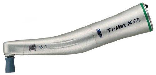Hidastettu profylaksiakulmakappale 16:1 valolla. Maksiminopeus 2500 kier./min. Titaanirunko & DuraCoat-pinnoite. Ruuvikiinnitteisille kupeille ja harjoille. 360 asteen pyörimisliike.