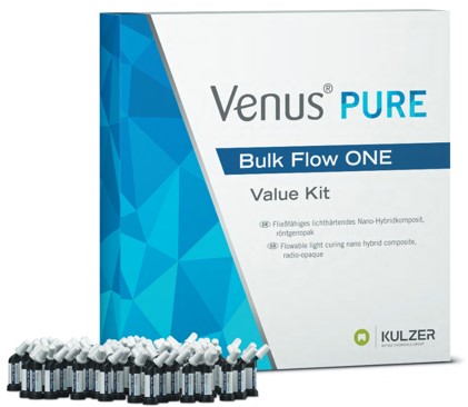 Ensimmäinen juokseva bulk fill-yhdistelmämuovi, jossa on YKSI väri ja jota ei tarvitse päällystää perinteisellä yhdistelmämuovilla. Helppo käsittely: Kaviteetti täytetään nopeasti ja helposti yhdellä kerralla maksimissaan 4 mm kerroksena ilman tarvetta peittää perinteisellä yhdistelmämuovilla. Kestävät täytteet: Matala kovettumiskutistuminen, korkea taivutuslujuus ja korkea kulumiskestävyys takaavat pitkäikäiset täytteet, jotka kestävät poskihampaiden suurta purentarasitusta. Bulk Flow ONE on sopiva myös maitohampaiden paikkaukseen.