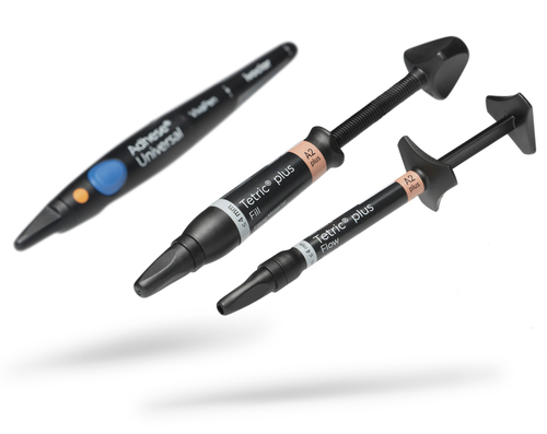 Tetric plus on uusi yksinkertaistettu universaali yhdistelmämuovi. Neljä sävyä kattaa kaikki VITA:n klassiset sävyt sekä Bleach-sävyn. Kerrospaksuus 4 mm. Tetric Plus Flow Kaikille kaviteettiluokille I, II, III, IV ja V. Tetric plus Bleach plus kattaa Vita-sävyt B1 ja valkaistut hampaat.Tetric Plus Flowssa samat neljä väriä. Tiksotrooppinen käsiteltävyys. Adaptoituva ja itsetasoittuva koostumus. Ei vaadi päällyskerrosta. Pakkaus sisältää:1x OptraGate 2 Small, 1x OptraGate 2 Regular, 1 x 2ml Adhese Universal VivaPen, 1 x 2 g Tetric Plus Flow ruisku A2 plus, 1 x 2 g Tetric Plus Flow ruisku A3 plus, 1x3 g Tetric Plus Fill ruisku A2 plus, 1x3g Tetric Plus Fill ruisku A3 plus, 1x Tetric Plus väriskaala,OptraGloss spiraalipyörä HP ja käyttöohjeet.