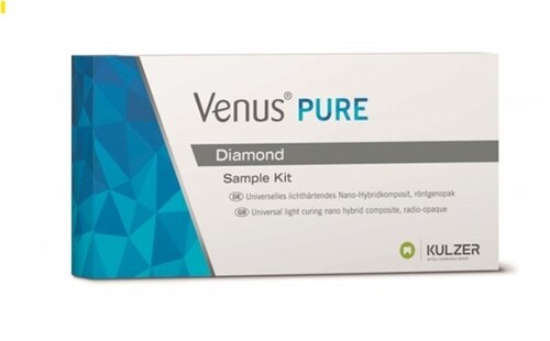Valokovetteinen, esteettinen nanohybridi yhdistelmämuovi etu -ja taka-alueelle. Hyvä kameleonttiefekti ja röntgenkontrasti. Helppo käsitellä, ei tartu instrumenttiin. Kovettumiskutistuma 1,5 %. Venus Pure sävy Medium. (Vastaa Vitan värejä: A2, A3, B3, C2, C3, C4, D3, D4).
