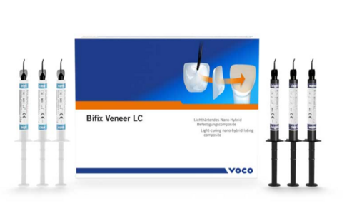 Pakkaus sisältää: Bifix Veneer LC ruisku 3 × 2 g ((bright, clear, warm), Bifix Veneer Try-In ruisku 3 × 2,5 g ((bright, clear, warm), Vococid ruisku 2 ml, Ceramic Bond SingleDose 20 kpl, Futurabond U SingleDose 20 kpl, Sticky Tim 10 kpl, tarvikkeet.