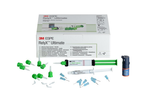 RelyX™ Ultimate on kaksoiskovetteinen muovisementti, joka on tarkoitettu erityisesti CAD/CAM ja lasikeramia töiden sementointiin. Sopii myös lähes kaikkien keramiasta, metallista ja yhdistelmämuovista valmistettujen epäsuorien töiden lopulliseen sementointiin. Materiaalilla on korkea sidoslujuus ja hyvä saumatiiviys. Erittäin esteettinen, ei värjäydy. Saatavana neljää eri värisävyä, myös kokeilupastat. RelyX Ultimate sementtiä käytetään yhdessä Scotchbond™ Universal sidosaineen kanssa. Kokeilupakkaus sisältää: 1 kpl Scotchbond™ Universal 1.5 ml, 1 kpl etsaushapporuisku 3 ml, 25 kpl etsauskärkeä, 50 kpl annostelutikkua, 1 kpl RelyX Ultimate ruisku (läpikuultava) 8.5 g, 10 kpl sekoituskärkeä (normaali), 5 kpl sekoituskärkeä (iso) + 5 kpl intraoraalikärkeä ja kuvallinen tekniikkaohjekortti.