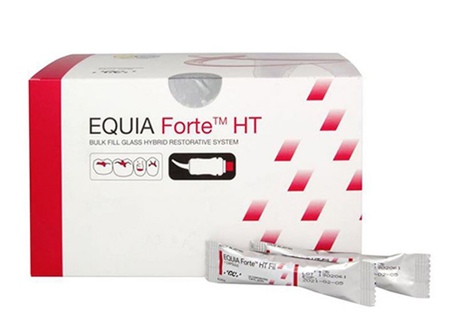Kemialliskovetteinen lasi-ionomeeri, Kemialliskovetteinen lasi-ionomeeri EQUIA Forte HT on biologisesti yhteensopiva pitkäaikainen Bulk fill täyteaine (Fil & Coat), jolla on parannetut mekaaniset ominaisuudet, erinomainen käsittely ja parannettu läpikuultavuus. Erinomainen saumatiiviys. Kokonaistyöskentelyaika 3 minuutti 25 sekuntia. Väri A2.