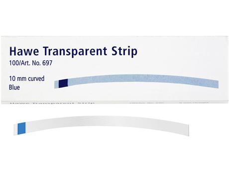 Läpinäkyvä kaareva suikale. Paksuus 0,05 mm, leveys 10 mm, pituus 73 mm, sininen.