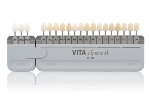 Väriskaalassa Vita classical värisävyt A1- D4 ja Vita 3D-Master värijärjestelmän bleach sävyt OM1- OM3.
